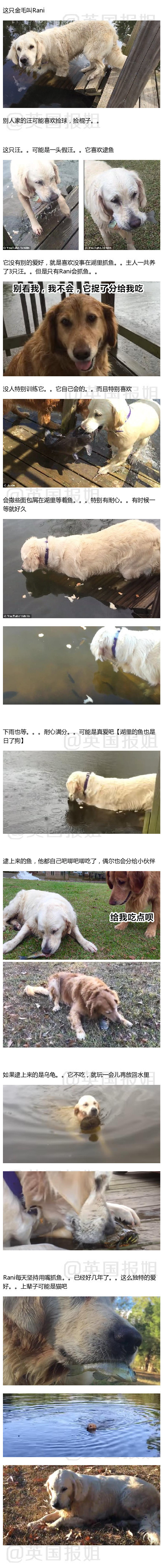 这只叫Rani的金毛热爱捉鱼还用面包屑钓鱼 厉害