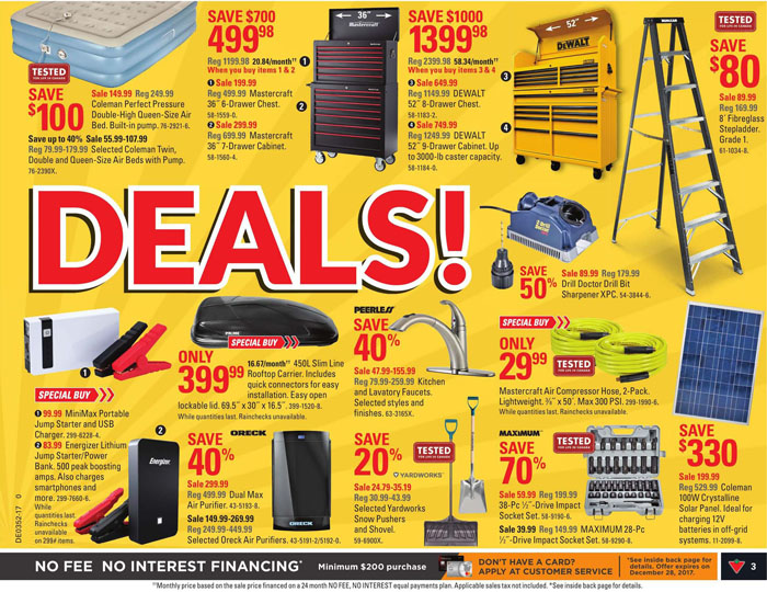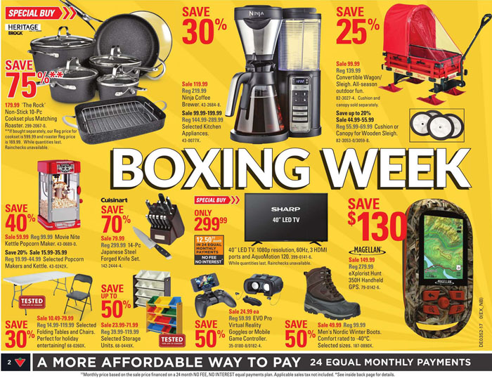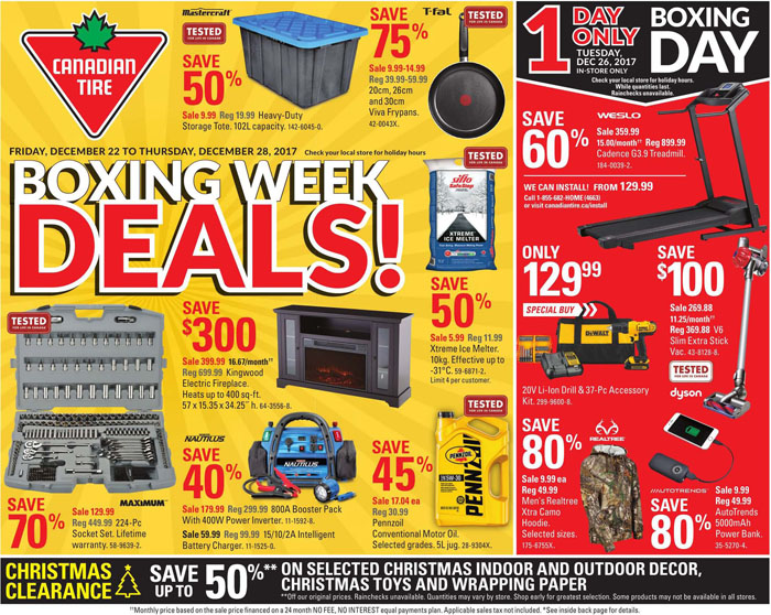【加国生活网】以下是加拿大Canadian Tire在2017年Boxing Day的促销信息,各个城市不同,促销商品可能会有所不同,请点击官网查询更精确的信息:http://www.canadiantire.ca