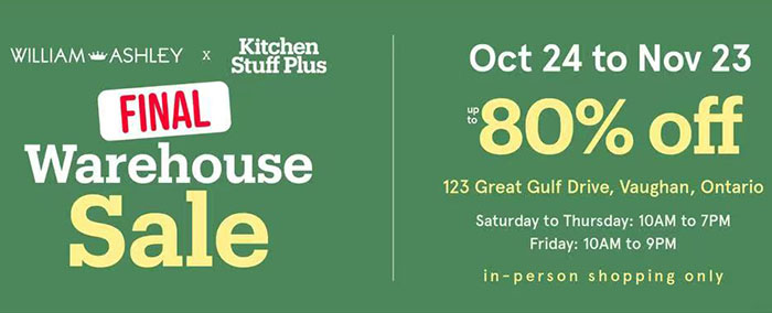 【加国生活网】每年都是圣诞节前一个月举行的William Ashley Warehouse Sale 在2025年又一次早早地提前一周从10月24日就开始举行了,感兴趣的朋友不妨去看看,今年是第50届,届时现场有厨房用品、家居用品、浴室用品、儿童玩具等打大折出售。这个Warehouse Sale在西人社区相当有名,许多人甚至开几个小时的车从安省北部到这个 Warehouse Sale来扫货。要知道,这个Warehouse Sale 里全部是知名品牌,包括Wedgwood、Denby、Doulton、Waterford、Riedel 等等,全场最高优惠 80% off,能以超低的价格买到超好的产品。