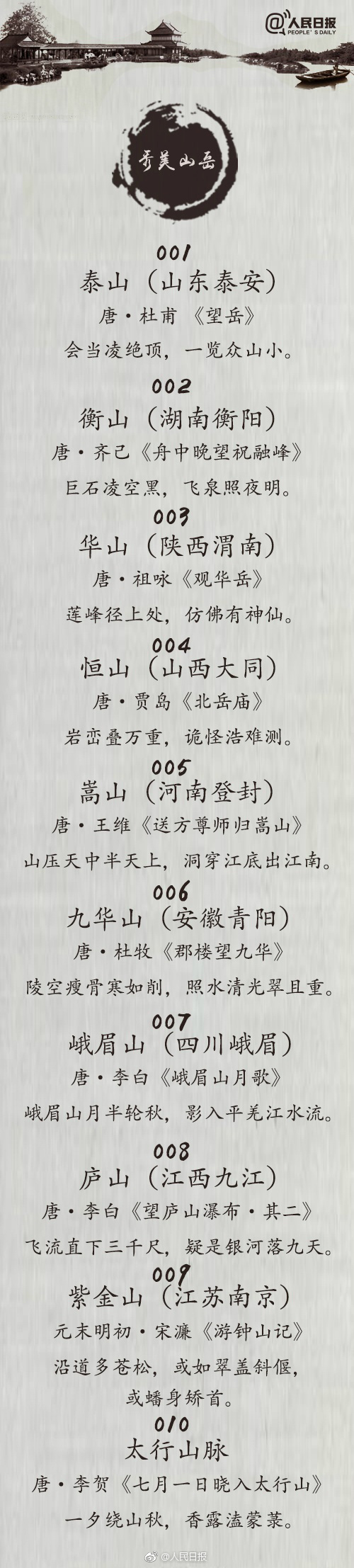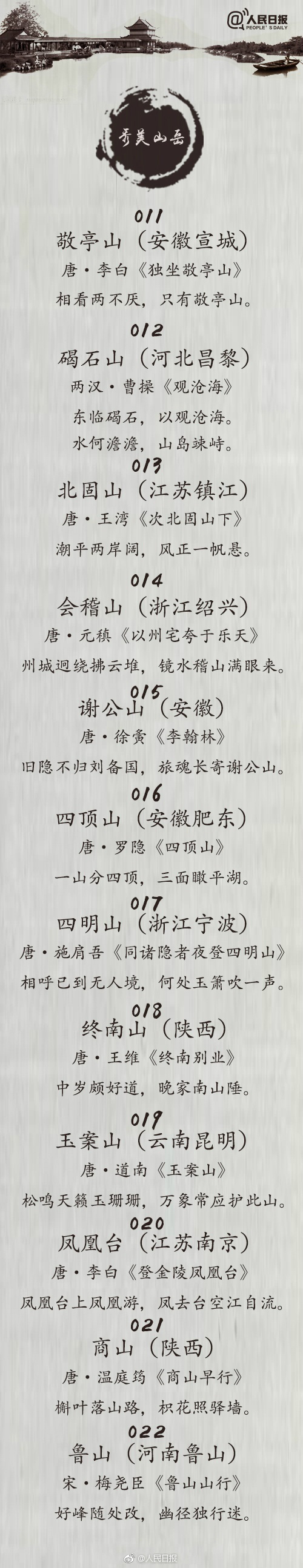 悠悠文明,中华大地。每一寸河山,都饱含着文人们的诗情画意。“会当凌绝顶,一览众山小”是写哪座山?“江流天地外,山色有无中”是指哪条江?“晴川历历汉阳树,芳草萋萋鹦鹉洲”说的是哪座名楼?…#清明#小长假,诵读85句经典诗词,带你游遍大美中国!