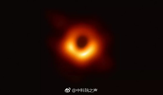 【天文学家捕获的首张黑洞照片公布】该黑洞图像揭示了室女座星系团中超大质量星系 Messier 87中心的黑洞。该黑洞距离地球5500万光年,质量为太阳的65亿倍。图中心的暗弱区域即为“黑洞阴影”。 (文字和图片来源@中科院之声)