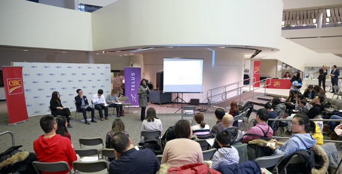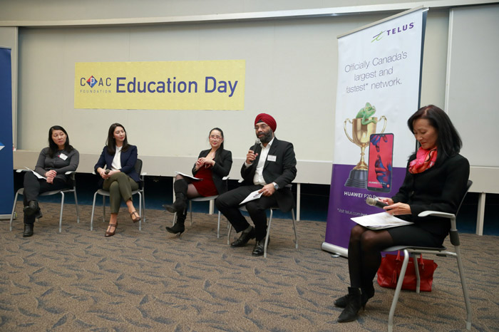 公校高中老师Zenobia Omarali、法语老师Diana Schwartz、家长代表Frank Wang与毕业学生代表Simon Ng为大家带来CPAC教育日分场讲座“探究加拿大教育体系:选择公校还是私校?英语学校还是法语学校?”