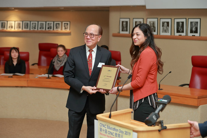 CPAC基金会会长林瑞铭(左)为第十届CPAC教育日活动主题赞助商TELUS代表Sarah Adnan(右)颁发感谢牌匾
