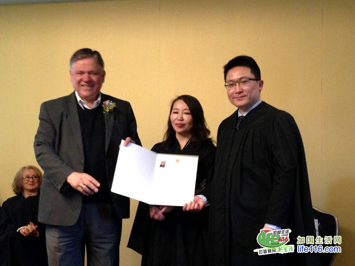 万锦市议员何胡景颁发贺信