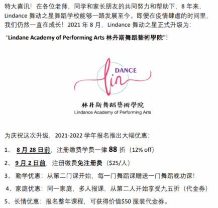 Lindance舞动之星舞蹈学校正式更名为”Lindance Academy of Performing Arts 林丹斯舞蹈艺术学院