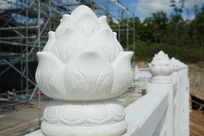 除此之外,还有在建筑方面,本地政府的法规要求,也有很大障碍。因为加拿大没有建过这种工程,Cavan-Monaghan是个小镇(人口9,000人),根本没见过这么大的工程。我们向当地政府递交的审批申请,也遇到很多困难。要他们理解和接受中国古建是很不容易的。最终,我们的团队突破障碍,经过多年跟政府的交流和说明,最后政府给与我们很大的支持。记得有一次五台山的建筑经理打电话给我说:佛法不可思议呀!我们的申请,现在居然拿到了!