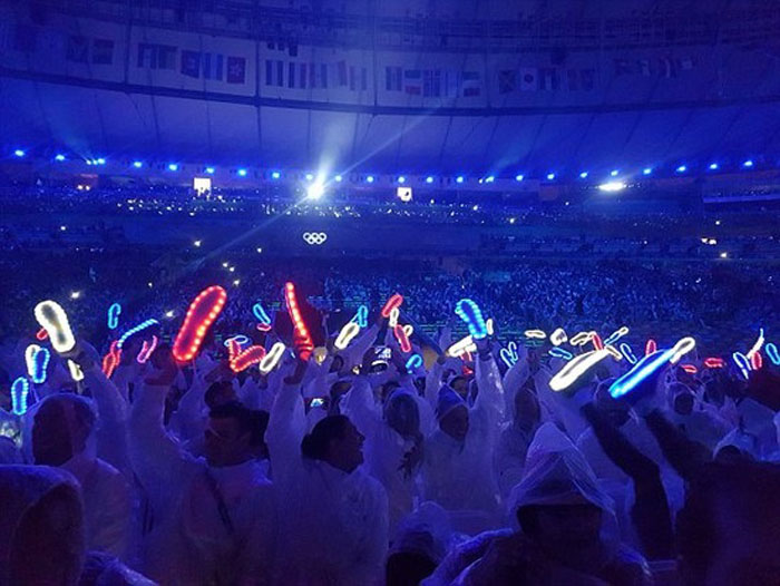 而且最奇葩的是,玩到兴起时,还能脱下来当荧光棒使……中国网友形容这是史上“最有味道的闭幕式”。