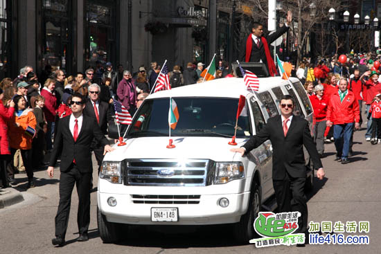 【加国生活网】2009年第22届St. Patrick's Day 于2009年3月15日星期天中午12点在多伦多市中心举行,同以往几届一样,游行路线从Bloor街出发,沿着Yonge街一路南下,到Queen街结束。由于St. Patrick's Day 起源于五世纪末期爱尔兰,用于纪念爱尔兰守护神St. Patrick,三叶苜蓿的绿色是这个节日的形象色,所以每年的St. Patrick's Day大游行的时候,多伦多街头变成了绿色的海洋,许多创意独特的“绿帽子”点缀其中,成为St. Patrick's 大游行一道亮丽的风景线: