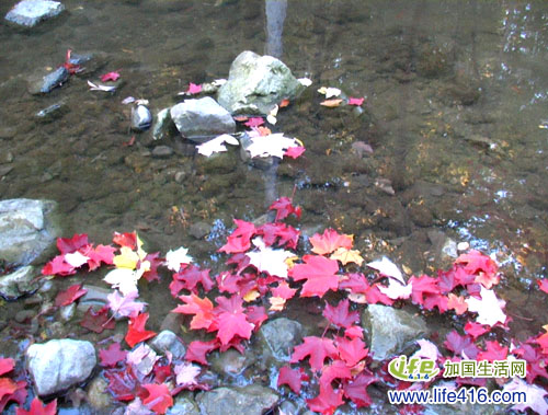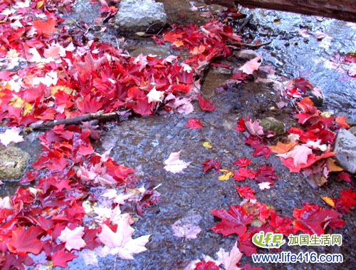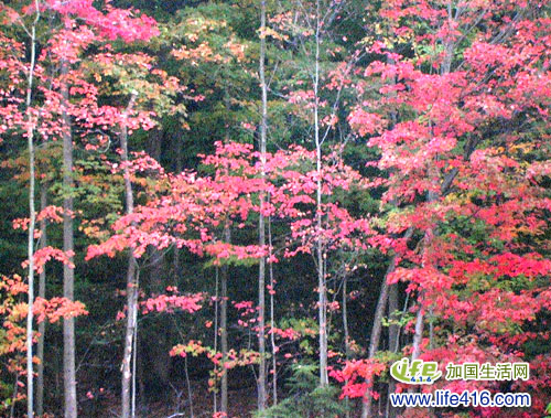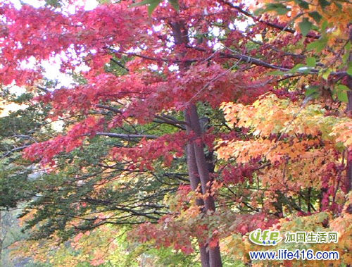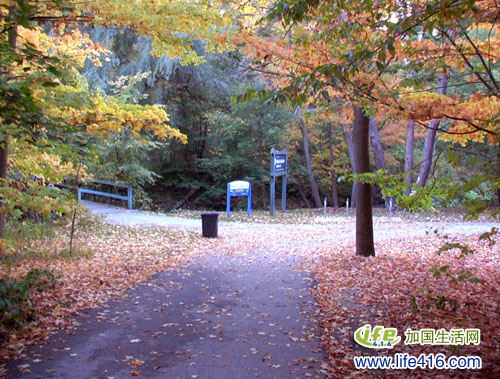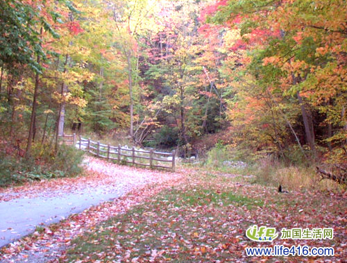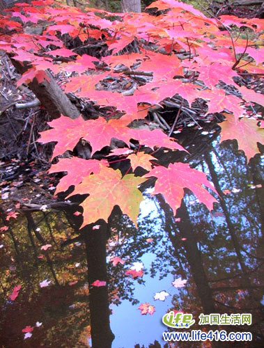 【加国生活网专稿】多伦多爱德华王子公园(Edwards Gardens)位于Lawrence夹Leslie的西南角,里面有一个Thomas J Bata Trail直通Sunnybrook Park。每天,有许多市民在这里跑步、骑自行车、谈恋爱、溜狗。就是在这段Trail里,曲径通幽,满目枫红。那片片的枫叶一点也不比Algonquin(阿岗昆)公园的差。