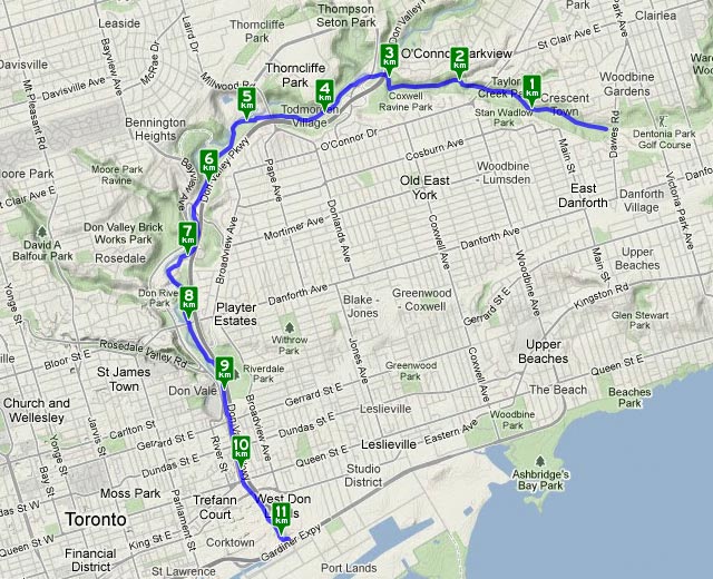 如果你想找一些稍微偏僻的路径,沿途有大量动植物欣赏,而且人也不是很多的自行车小道的话。这个地方简直太适合你了。但是找到它是一个小小的挑战,因为它入口比较少。你可以在 Evergreen Brick Works享受个早午餐,参观一下 Todmorden Mills,以及Riverdale Farm,如果有多余的时间还可以参观一下 樱桃海滩(Cherry Beach)。