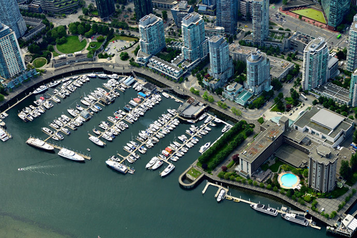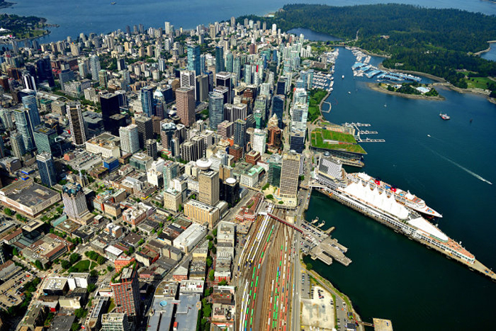 俯瞰Downtown,多民族的包容全汇聚在这儿了。五帆酒店(Canada Place),大温的地标建筑。