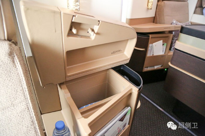 商务舱位于A380上层,得益于上层空间的设置,每个靠窗的座位都有两个巨大的储物柜,放随身物品、电脑、相机等等均无问题,对于我这样坐飞机要各种设备拍摄的人来说尤其方便。