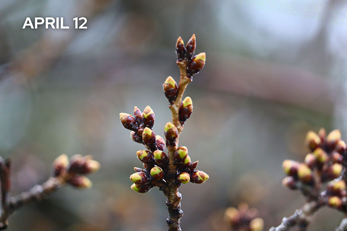 2026年4月6日:截至2026年4月6日,多伦多High Park的樱花正逐渐进入开花发育过程的第一阶段,花蕾开始泛绿。现在预测盛花期还为时尚早,未来几周的天气状况将决定花期,届时或许能做出更准确的预测。根据以往的经验,每年通常在4月下旬至5月上旬达到盛开高峰。