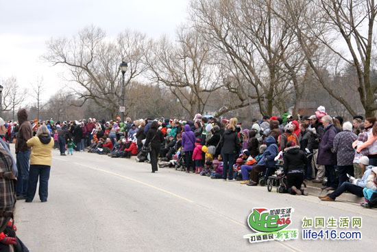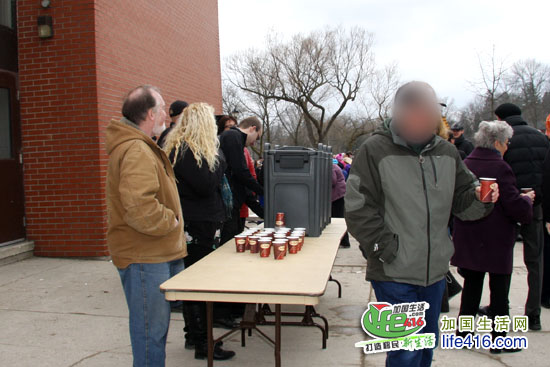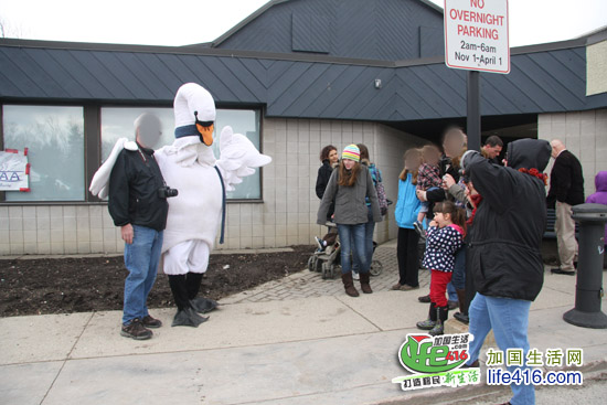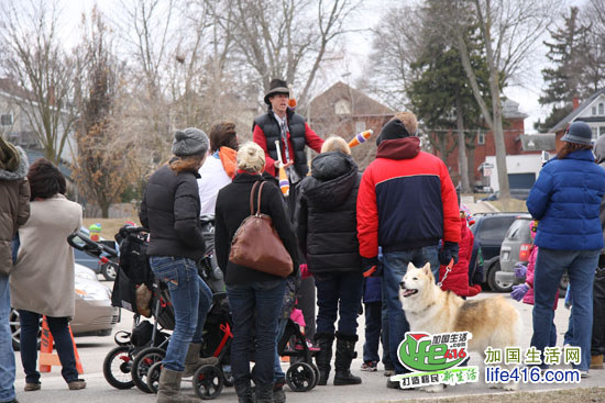 天很冷,Tim Hortons 赞助了免费咖啡和Timbits,大家人手一瓶咖啡,看天鹅大游行了……