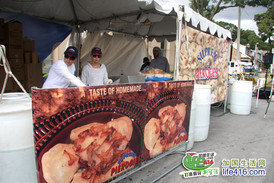 这个摊位前,排了长长的队,到底是什么美食,小编凑到前面仔细一看,这个称做pierogi 的美食,不就是中国的饺子吗?小编回来后Google 了一下这个pierogi,这确实是饺子,但是属于波式肉馅饺子或是东欧式的饺子,个头稍微比中国饺子大,还论个卖呢,6个8块多,还挺贵的哟。