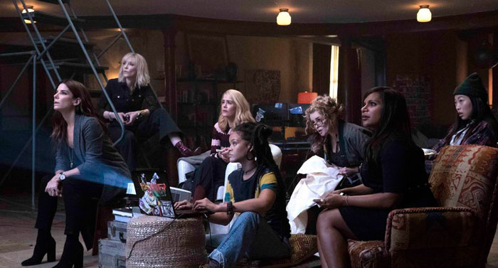 影片由Sandra Bullock、Cate Blanchett、Anne Hathaway、Mindy Kaling、Sarah Paulson、Rihanna、Awkwafina、Helena Bonham Carter领衔主演。