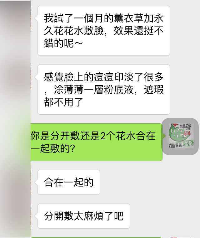 谢谢!(小编答复:一般来说,敏感痘痘皮肤做面膜要做洋甘菊花水,不是敏感皮肤的用茶树花水去痘。)