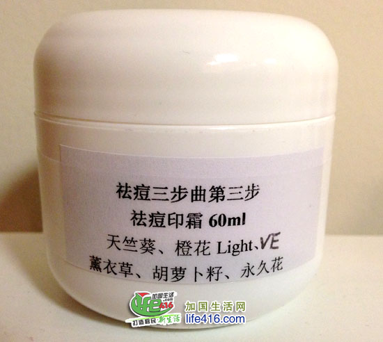小编2014年12月18日有关“去痘/祛痘三步曲”配法的最新说明:去痘/祛痘三步曲经过近一年大家的使用后,网友们纷纷反馈各种意见。由于每人的痘痘成因不同、皮肤不同、体质不同,造成使用三步曲的效果各不相同。大家第一的反馈就是10ml或25ml的容量太少,痘痘还是红的呢,第一步就用完了。因此小编果断采用给大家配60ml的霜的方法,这种霜配出后,效果相当不错。因此,小编以后会以单独配第几步霜的方法帮助大家配霜,请大家和小编联系时,一定说明自己的痘痘情况,看自己可以使用第几步的霜。