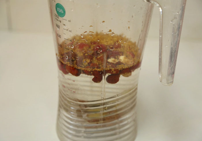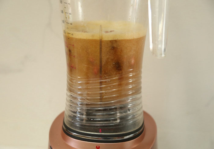 7、加入红糖和烤香的花生,再启动“豆浆”功能打两分钟即可。