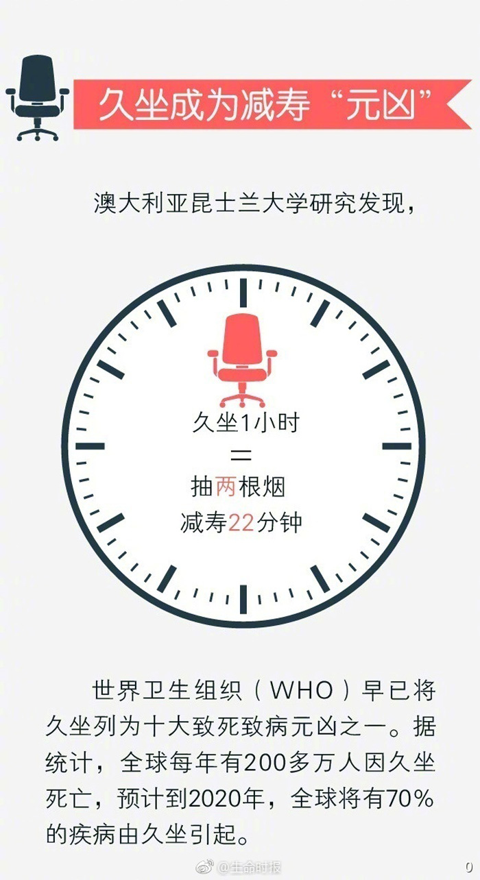 上班8小时坐着,吃饭坐着,聊天坐着,回家看电视坐着……不知不觉,你已经成为久坐族中的一员。久坐带来众多健康问题,如颈部僵硬、腰背酸痛,甚至会缩短寿命。《生命时报》采访权威专家,送上自救指南,助你彻底告别“椅子病”。