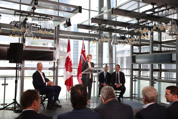省长韦与加拿大男士健康基金及多伦多枫叶球队等机构的行政人员,以掷冰球开赛的模式宣布省府5年拨款500万元,帮助安省男士提高健康的意识并持之以恒