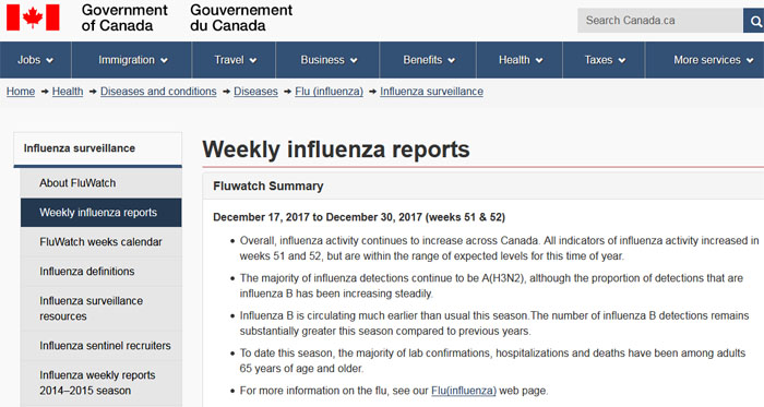 小编最新爆料:进入2018年,随着国内爆发乙型病毒等多种病毒共存的流感(这次流感爆发出现了多种流感病毒共同流行的情况,目前已知有乙型流感病毒、甲型H3N2亚型流感病毒和甲型H1N1流感病毒)之后,加拿大各个省份也报告出现多宗甲型流感病毒H3N2等多种病毒流感,部分地区急诊病房人满为患。