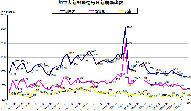 5月3日:魁省单日新增确诊爆增2千多 加拿大总数至59474