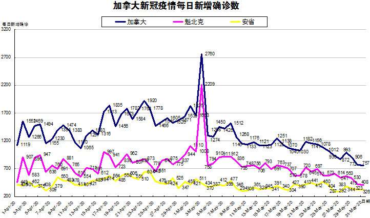 5月3日:魁省单日新增确诊爆增2千多 加拿大总数至59474