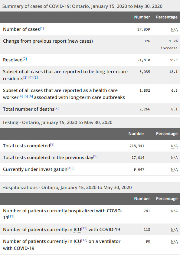 5月27日:安省紧急命令延长至6月9日 多伦多发布新冠疫情报告和地图