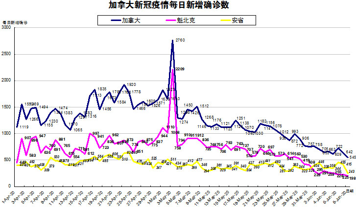 6月2日:加拿大新增病例连续四天低于800 安省却逆势反弹至446