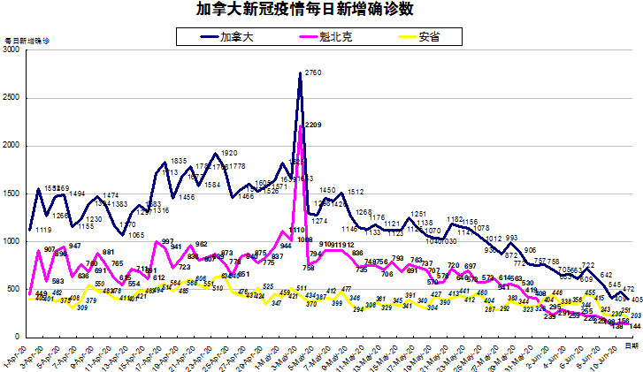 6月9日:加拿大新冠疫情呈下降趋势 连续2日魁省低于200安省低于300