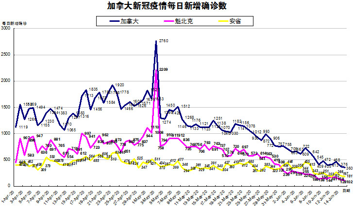6月14日:魁省128安省197 加拿大当日新增376首日低于400
