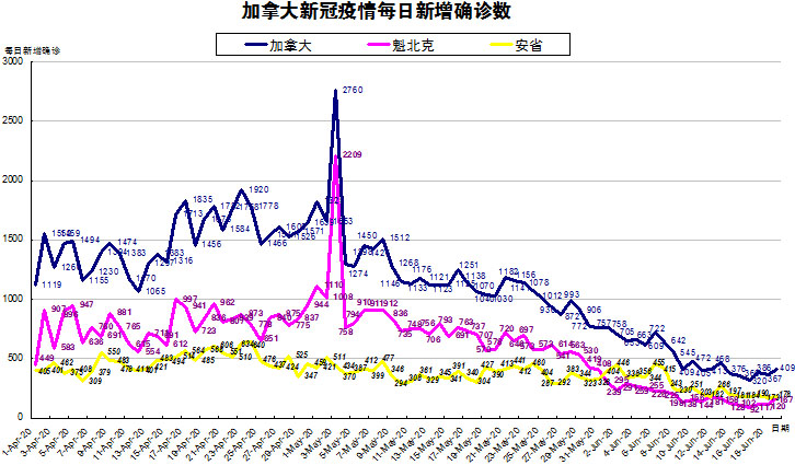 6月9日:加拿大新冠疫情呈下降趋势 连续2日魁省低于200安省低于300