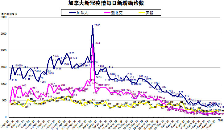 5月31日:加拿大每日新增确诊数连续2天低于800以下 魁省死亡率升至9.1%