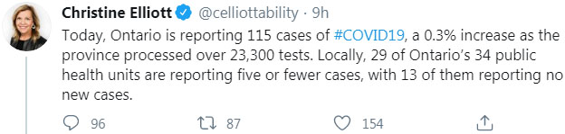 —— 安省在8月23日新增115例确诊病例,连续第3天超过100例。安省卫生厅长叶丽雅(Christine Elliott)发推说:“从各地区来看,34个公共卫生局中,有29个最多增加5例或更少,其中13个完全没有报告新增病例。”从地区来看,皮尔区32例最多、多伦多20例排第二、约克区10例排第三、渥太华7例排第四、杜兰区(Durham Region)5例。约克区之前一直是个位数,而最近却有上升趋势。
