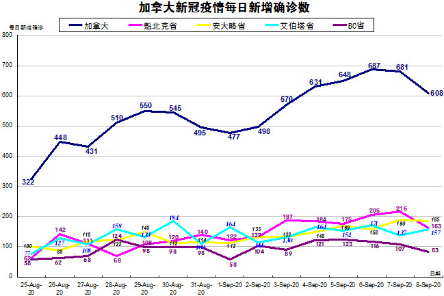 9月7日:加拿大每日新增确诊病例数一直在稳步增长 疫情令人担忧