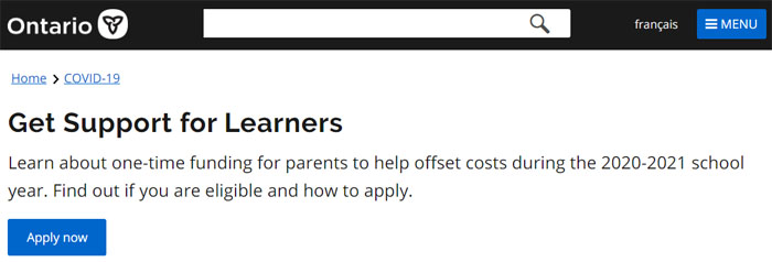 —— 安省省长福特在11月30日的新闻发布会上宣布,从11月30日起至至2021年1月15日,家长和监护人可以在线申领一笔一次性的补助金,用于2020-2021学年的费用,无论是公校或私校,还是在校学习或在家上网课的学生,都有资格申请。每个家庭可以为每个12岁以下的孩子申请$200,或为21岁以下有特殊需要的青少年申请$250。
