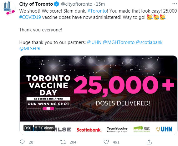 多伦多疫苗日接种2.5万剂疫苗 创北美诊所单日接种疫苗最多记录 — 加拿大新冠肺炎新闻