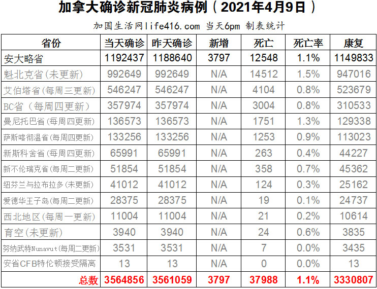 由于大部分省份在本周末没有更新,加国生活网小编制作的曲线图也只能在周末暂停,等周一发布更新数据后,小编会根据最新数据制作图表。