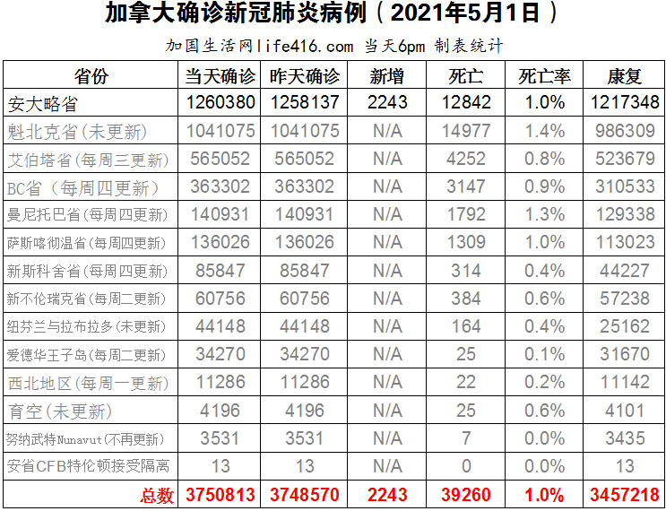 由于大部分省份在周末没有更新,加国生活网小编制作的曲线图也只能在周末暂停,等周一发布更新数据后,小编会根据最新数据制作图表。