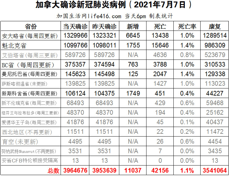 7月1日至7月3日加拿大国庆日长周末各省没有疫情数据更新报道暂停