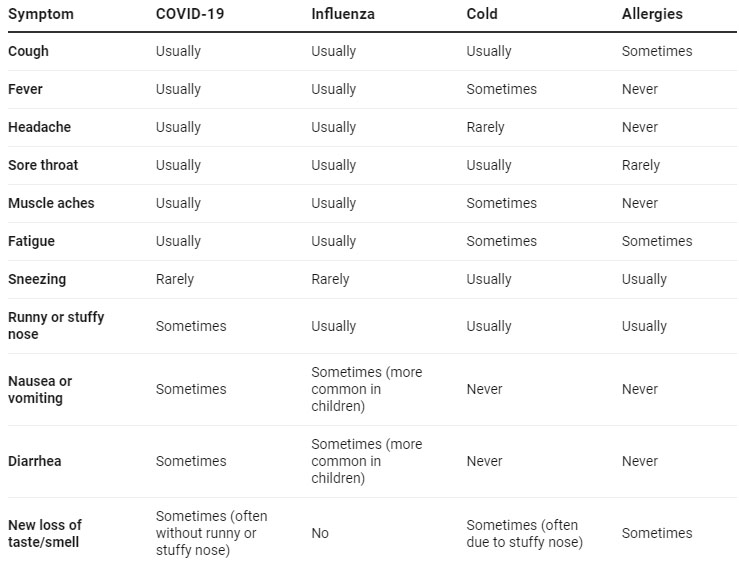 症状:到底是新冠肺炎、流感、感冒还是季节性过敏?
