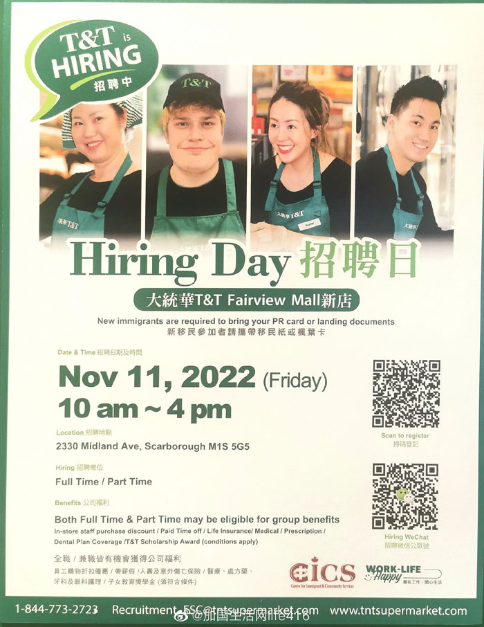 【加国生活网】想找工作的朋友看过来,Fairview mall大统华即将开业,11月11日10am-4pm在2330 Midland举行招聘会(注意:招聘会不在Fairview mall哈,而是招聘上后工作地点在Fairview mall),感兴趣的朋友赶紧准备好简历去试试吧!!