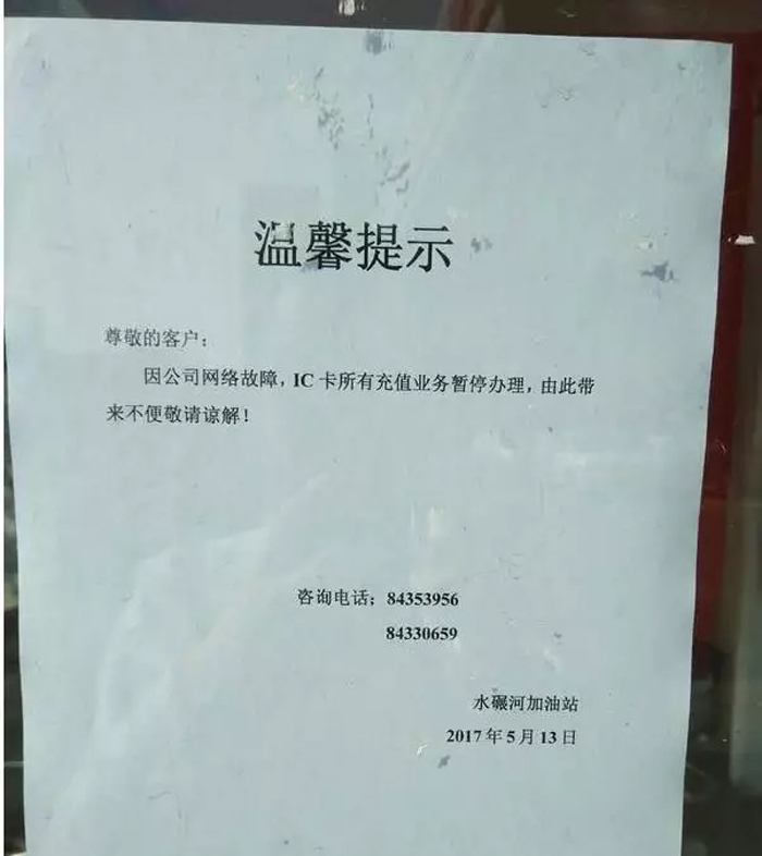 全国多地中石油加油站突然断网