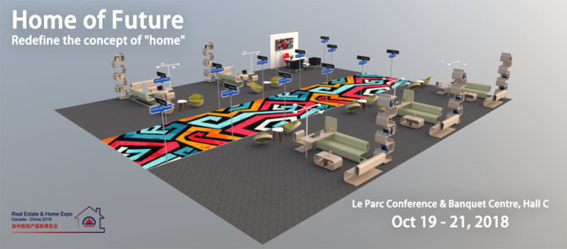 此次房博会在位于HWY7及LESLIE交叉路口的LE PARC会议中心举行,占据了HALL A, HALL B及HALL C三个展厅作为展览区,另有两个会议室作为加中地产高峰论坛举办场所。为了迎合现代年轻人不断增长的家居市场需求,满足他们对年轻,创意及科技化的生活品质追求,主办方特在HALL C专门设置了“未来之家”特色展厅,旨在吸纳现代化的家居产品及能改善家居生活舒适度给人带来未来感和幸福感的特色产品及服务。