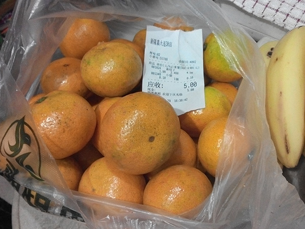 ▲在大连新隆嘉(31店)商场购买的无核蜜桔