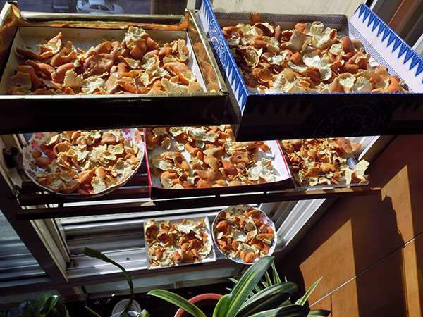 从今年初秋至初冬,我积攒的首批新鲜桔皮(积攒过程也不容易)终于进入“一蒸”和“一晒”阶段(详见以下照片)。