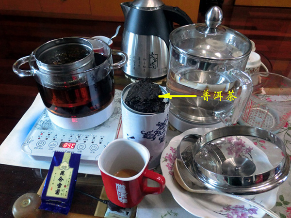 为了进一步学习洗茶的方法,我又以购买普洱茶饼为由去几家茶行(家附近福佳新天地广场四楼有几十家茶行)论证。接待我的店主好几位分别来自云南、福建茶叶产地,在品茶过程中,他们交叉杯壶,手法娴熟泡茶,都采用了快速洗茶的方法,令我大开眼界,在与他们的交谈中,也让我更加了解喝普洱茶的好处:能生津止渴、醒脾解酒、开胃消滞、抑菌减肥。相对比绿茶之性寒和红茶性之热,普洱茶既不寒不热,又经济实惠,不仅是普洱茶产地人们喜欢喝,而且更适合港澳人的肠胃,他们称普洱茶为“宝利茶”。在泡茶过程中,店主也告诫不要过度洗茶,否则会使普洱茶的功效降低。