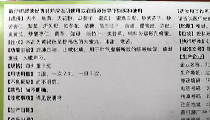 也巧了,前几天,老伴发低烧并伴有咳嗽、痰黄、嗓哑,我反复浏览上述二集视频,并下载至手机硬盘(3GP格式),协助老伴按专家所述症状自己来“对号入座”,确认是因“内热外寒”感冒导致,应该购买“小柴胡颗粒”成品药更为合适(我分二次买的:云南白药集团产,15元/1盒6包,江西南昌桑海制药厂产,8.2元/1盒6包),因咳嗽较重,在本地药房购买不到专家推荐的“止嗽散”,就去本地同仁堂专卖店寻到“润肺止嗽丸”(北京同仁堂集团产,52元/1盒10丸。经查,同仁堂官网上为同样价格。上述专卖店会员日时的价格为49.4元),服用后二天,感冒症状基本消失,咳嗽也得到很大改善,尤其是后者药,价格虽贵些但疗效甚佳,傍晚首次服用,晚上就睡稳当了,真心为名牌药厂产之妙药和祖国传统中草药之神奇点赞。