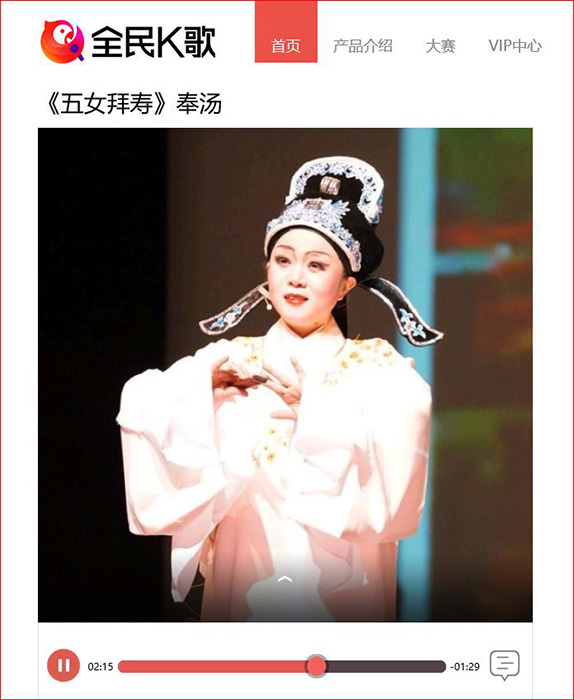 我女儿在全民K歌学唱越剧《五女拜寿》“奉汤”(尹派)选段: